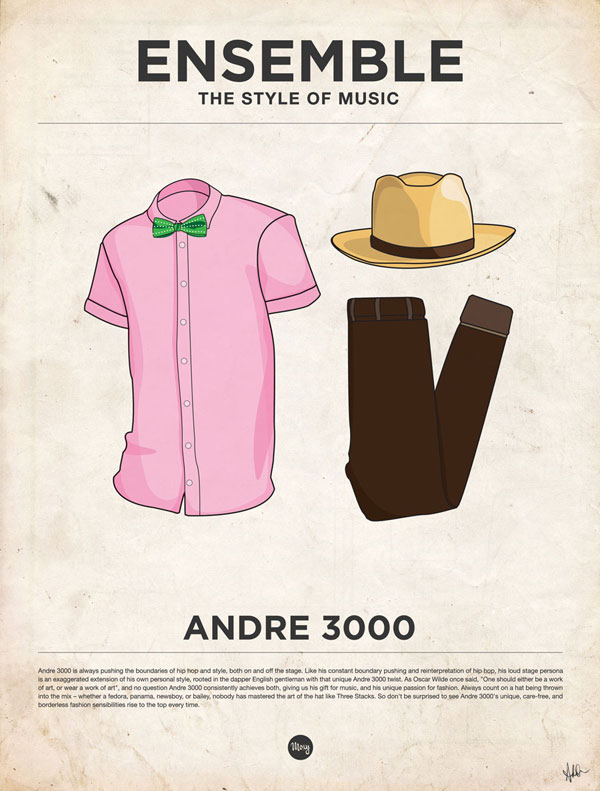 Além das características pessoais, os nossos astros mostravam personalidade ate nas roupas que vestiam. Tendo isso em mente o designer Glenn Michael junto ao ilustrador James Alexander desenvolveram o projeto ENSEMBLE The Style Of Music, que são vários posters com apenas os figurinos de alguns ícones da nossa música.